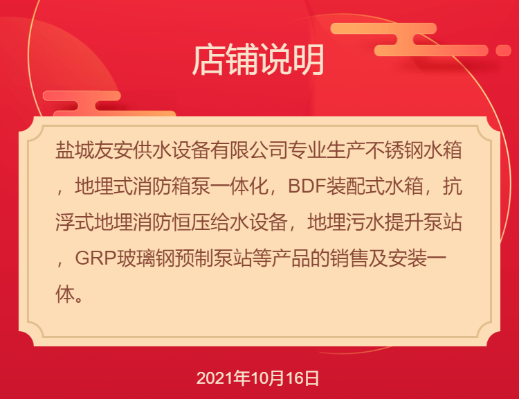 抗浮式消防箱泵一體化產(chǎn)品還具有良好的抗震性能。在地震等自然災(zāi)害發(fā)生時,它能夠更好地保護(hù)設(shè)備不受損壞,確保消防系統(tǒng)的可靠性。該產(chǎn)品的設(shè)計(jì)和制造符合相關(guān)的國家標(biāo)準(zhǔn)和規(guī)范,能夠?yàn)橛脩籼峁┌踩煽康南腊踩U稀?/p> 選擇鹽城友安供水設(shè)備有限公司的理由